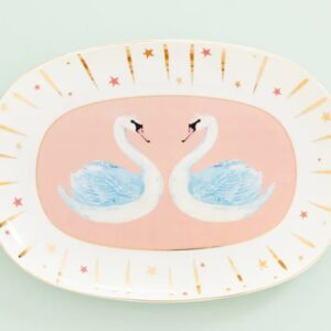 PIATTO OVALE 40 CM CIGNO XMAS IN PORCELLANA BONE CHINA YVONNE ELLEN